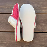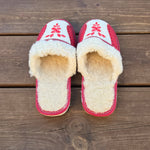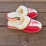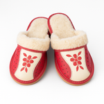 Pantoufles en cuir et laine rouge brodées